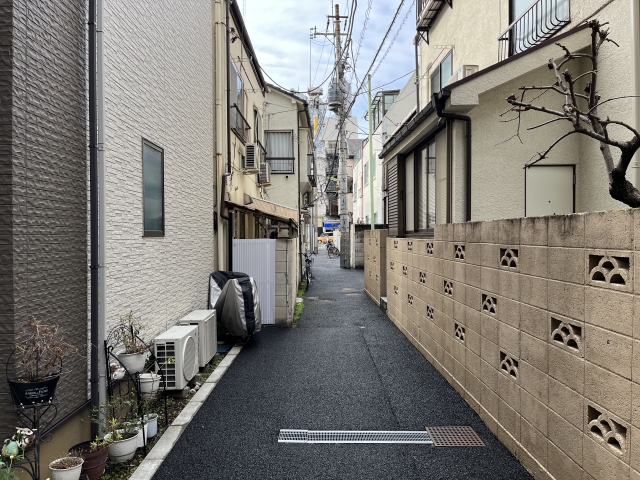 旗竿地(旗のように細長い接道部分がある土地)に多く見られるケースです。